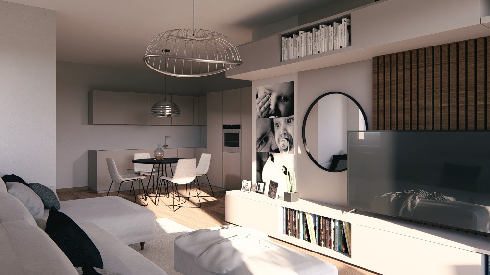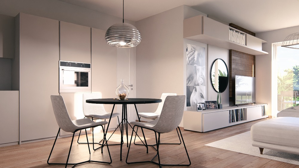 Al piano terra negozi qualificati, posti auto, cantine , posti bici. Capitolato di alto livello e personalizzabili : pavimenti in listone di rovere spazzolato, riscaldamento a pavimento con pompa di calore e pannelli fotovoltaici, infissi in pvc con tapparelle elettriche, domotica, sanitari sospesi .
